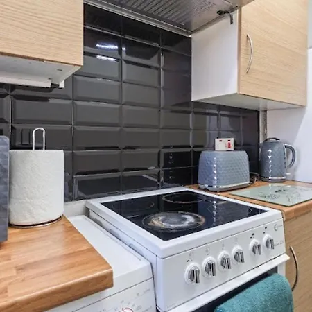 A fully equipped kitchen is provided at 1 Bedroom Apartment Sleeps 4 Free Parking Tv